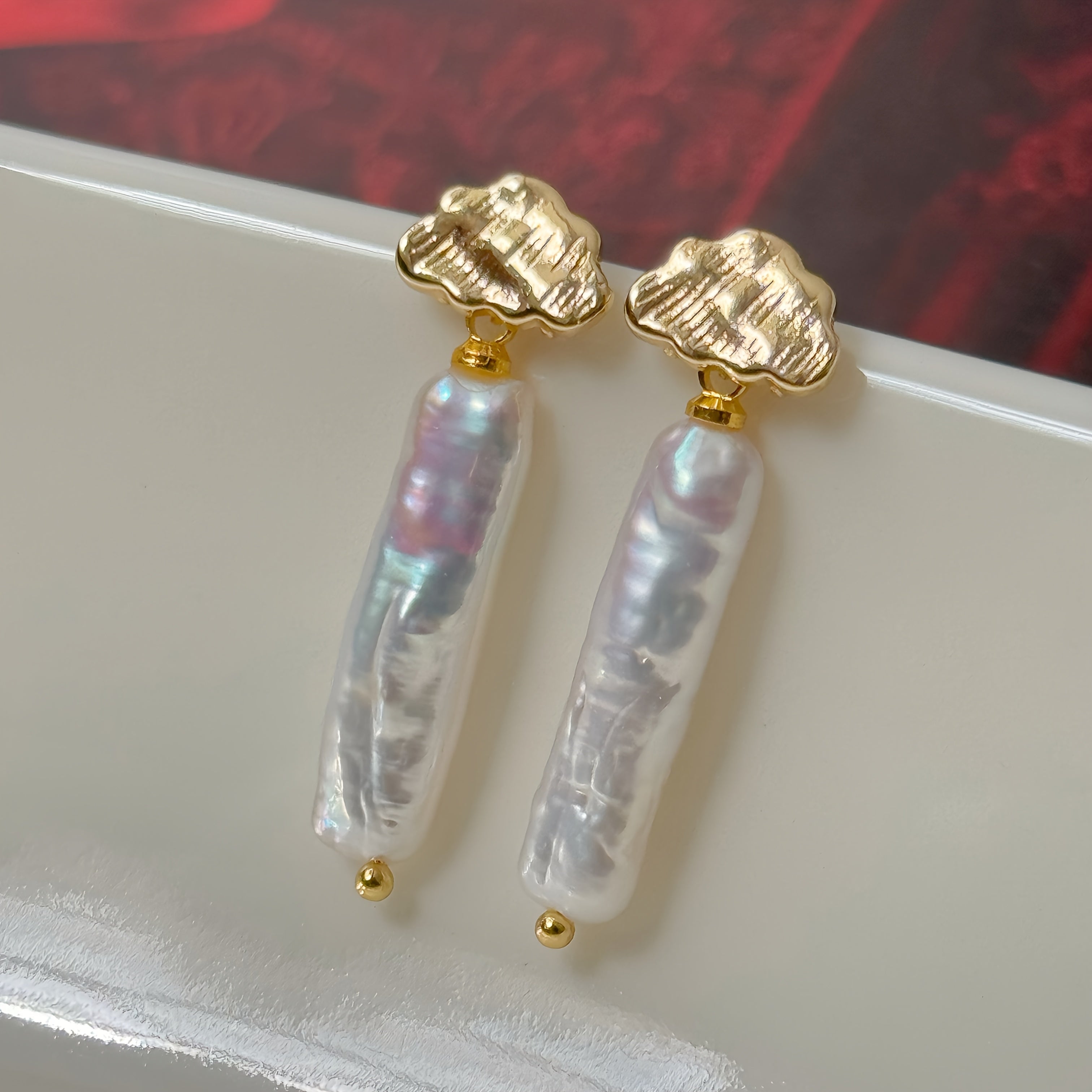 Ces boucles d’oreilles en perles baroques naturelles dévoilent des reflets subtils allant du blanc irisé au rose violacé, sublimés par une base en forme de nuage doré. Un design à la fois poétique et affirmé, pensé pour les hommes mais parfaitement adapté à tous les styles.