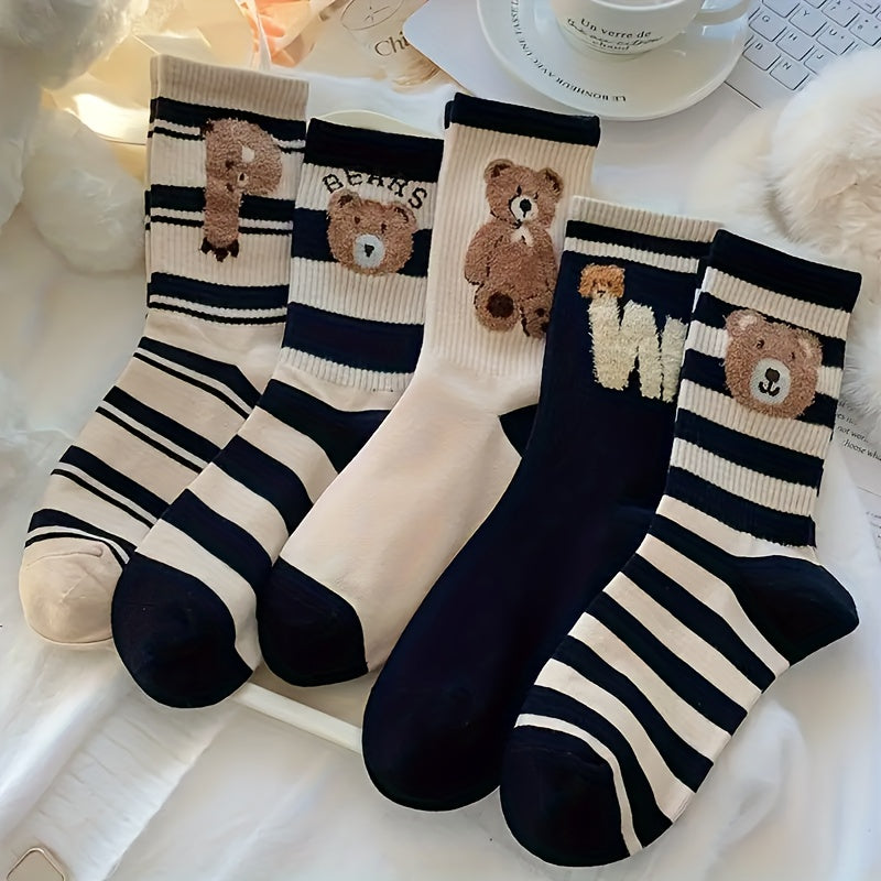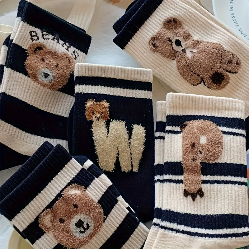 5 Pairs of Men's and Women's Fluffy Cartoon Bear Socks Comfortable Warm Mid-Calf Socks