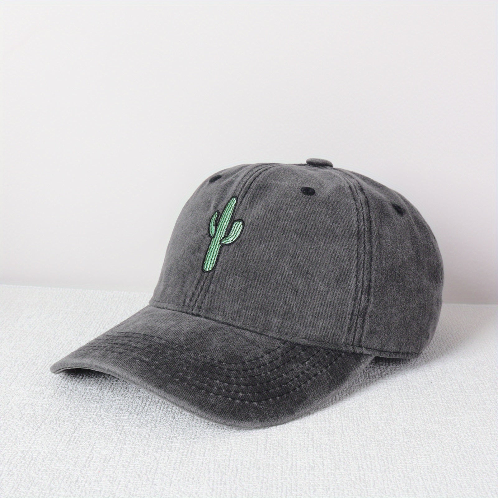 [Vintage Baseball Cap] VERG Vintage Cactus Embroidered Baseball Cap | 1pc, Desert Style, Adjustable Unisex, Breathable & Lightweight, Gray with Neon Green Thread