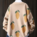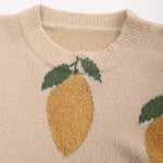 Women's Fashion Knitted Pullover - Fruit Pattern, Mink, Casual Round Neck, Long Sleeves, Comfortable for Daily Wear