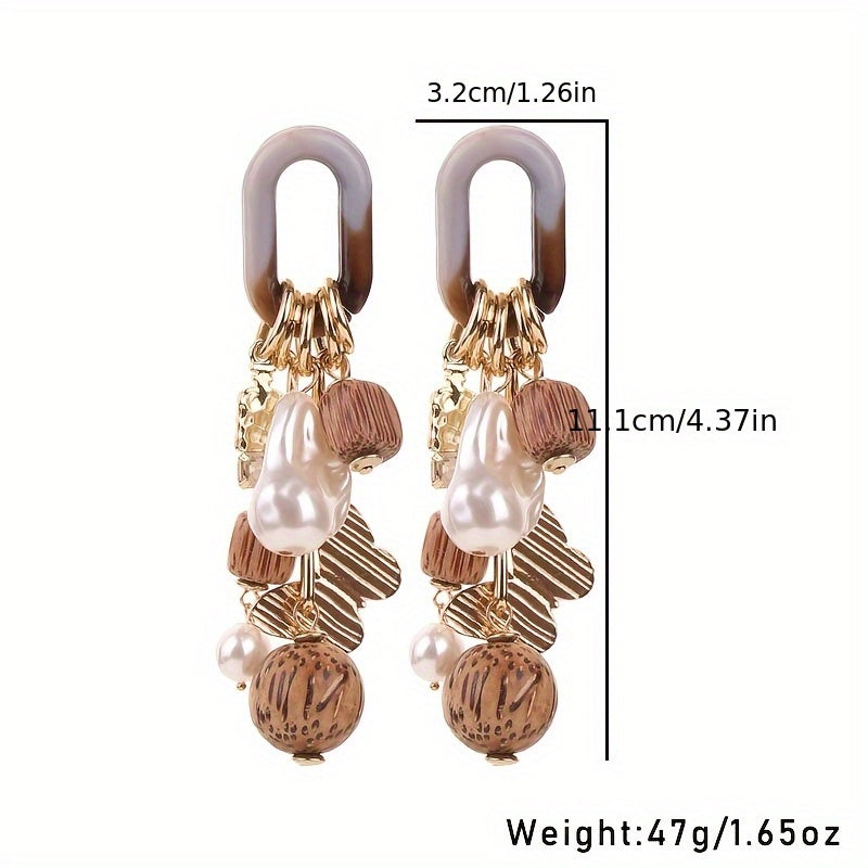 StyleA pair of imitation pearl butterfly wooden bead tassel earrings