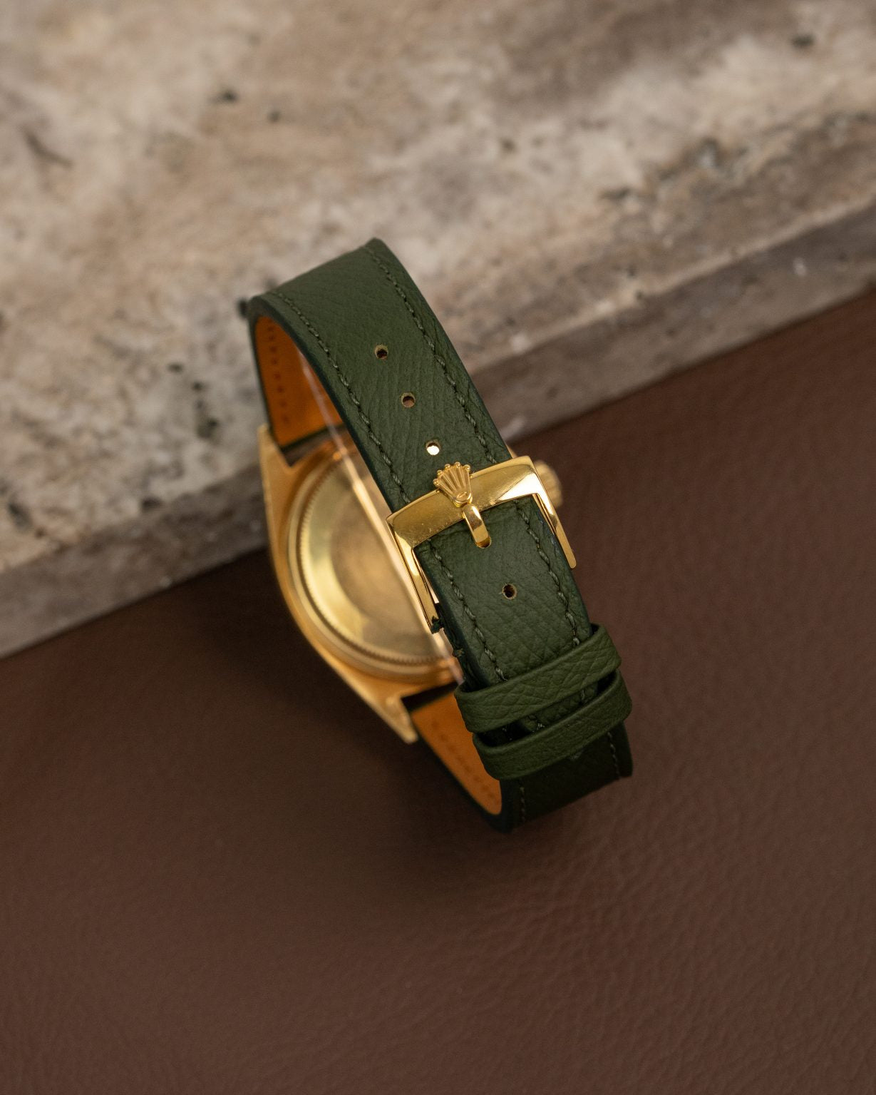 Un véritable classique de la haute horlogerie : cette Rolex Day-Date, référence 1803, se distingue par ses aiguilles fines dites « Cigarette » et son cadran rare ‘Double Dash’. Ce détail subtil en fait une pièce recherchée des collectionneurs, symbole de l’élégance des années 1970.
