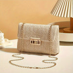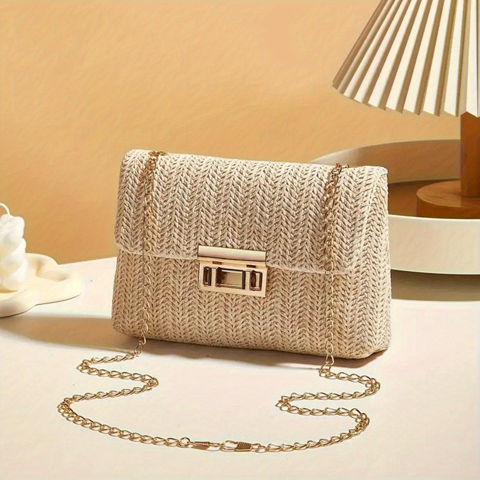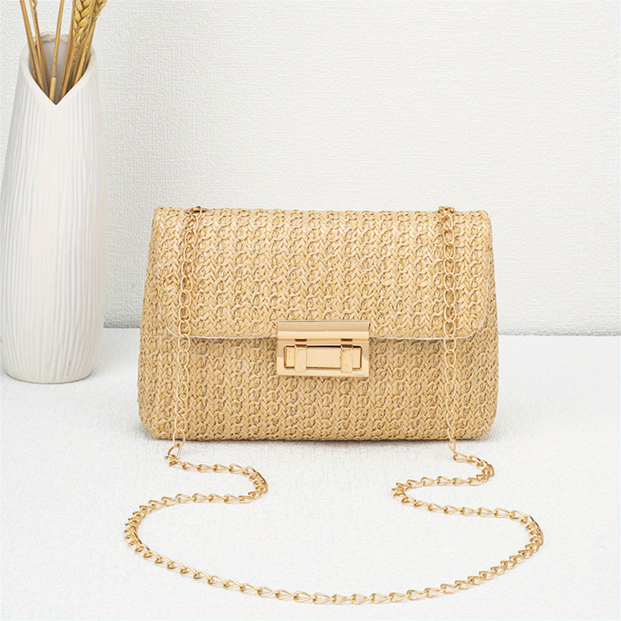 Adoptez l’élégance décontractée de ce sac à rayures en rotin, idéal pour sublimer vos tenues estivales. Son design rigide à fermeture "baiser" apporte une touche rétro charmante, tandis que ses anses fixes assurent un porté structuré et confortable.