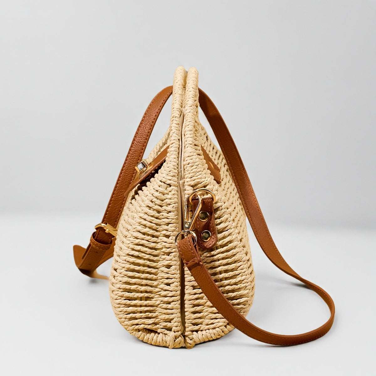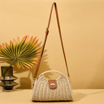 Fermé par un fermoir rotatif au charme discret, il s’ouvre sur une doublure en polyester, douce et fonctionnelle. La bandoulière amovible permet une transformation instantanée — porté croisé pour une promenade en liberté, ou à la main pour une soirée sur la côte.