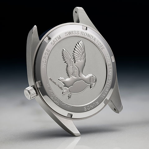 Enfin, le fond de boîtier rend hommage à l’iconique macareux moine de l’Atlantique avec une gravure finement détaillée.