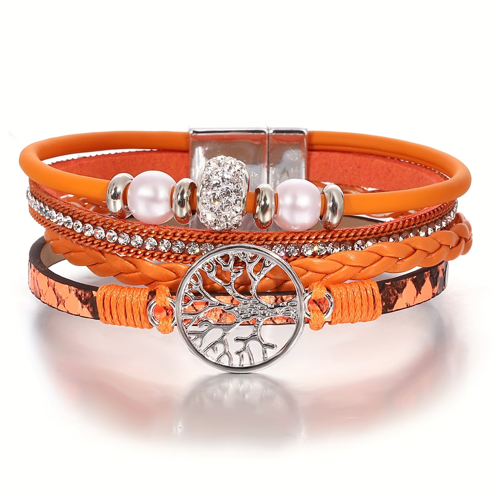 This faux leather bracelet, adorned with sparkling rhinestones, combines vintage style with a bold punk twist. Perfect for expressing your unique personality on a daily basis or at festive events, it offers a look that's both elegant and rebellious.