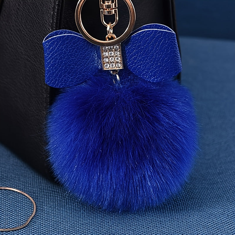 Discover this rabbit fur pompom key ring , in a pretty soft and fluffy blue, enhanced with a glittery bow , rhinestones and a gold chain . This little kawaii treasure is cute, shiny and terribly endearing!