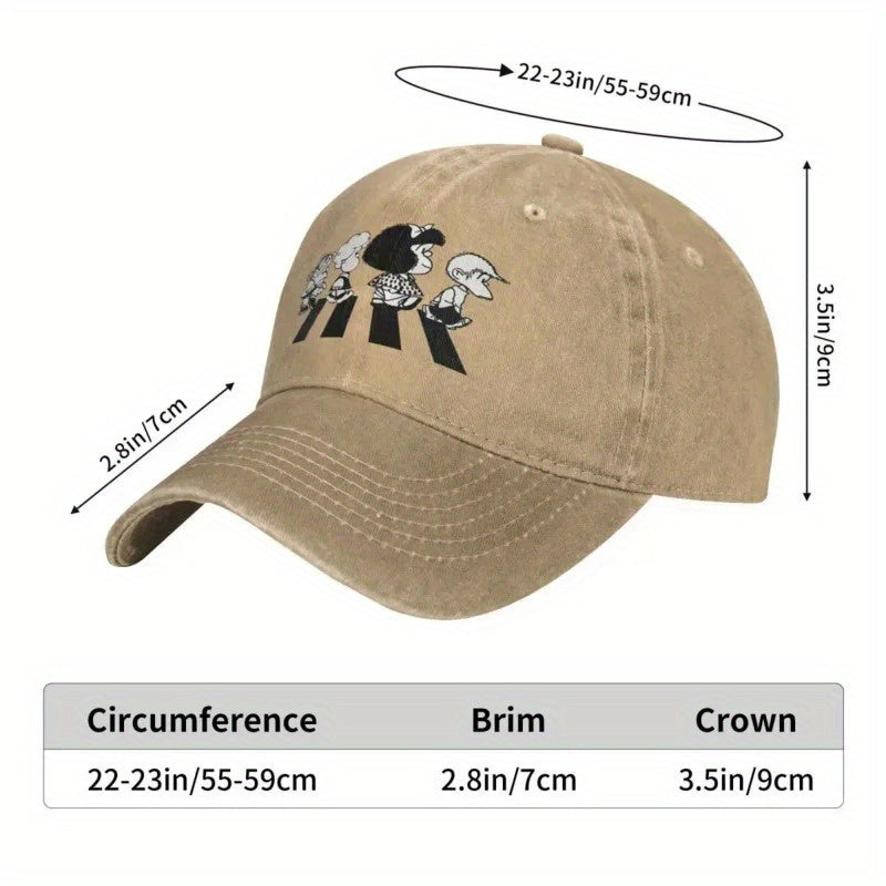 [Lightweight Design] Lightweight Polyester Blend Baseball Cap with Her Friends Mafalda Cartoon Design - Machine Washable, PVC Coated Sun Shade Hat for Men, Sun Protection Hat|Cartoon Baseball Cap|Breathable Fabric, Baseball Cap