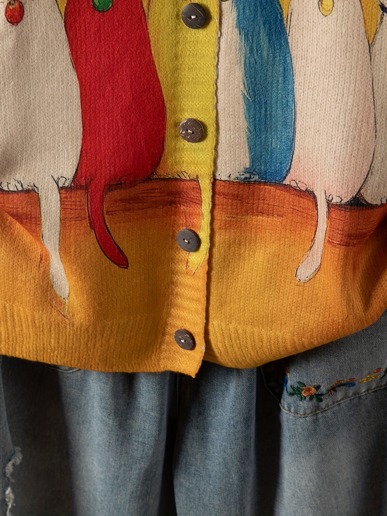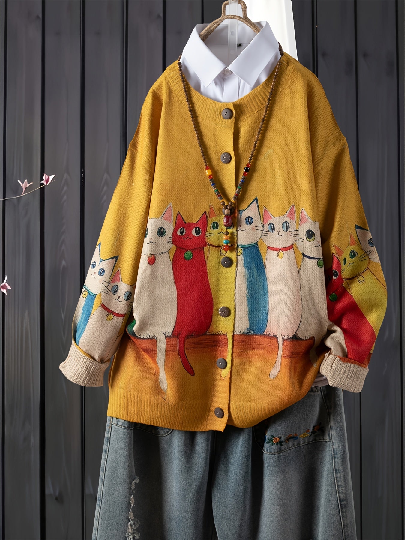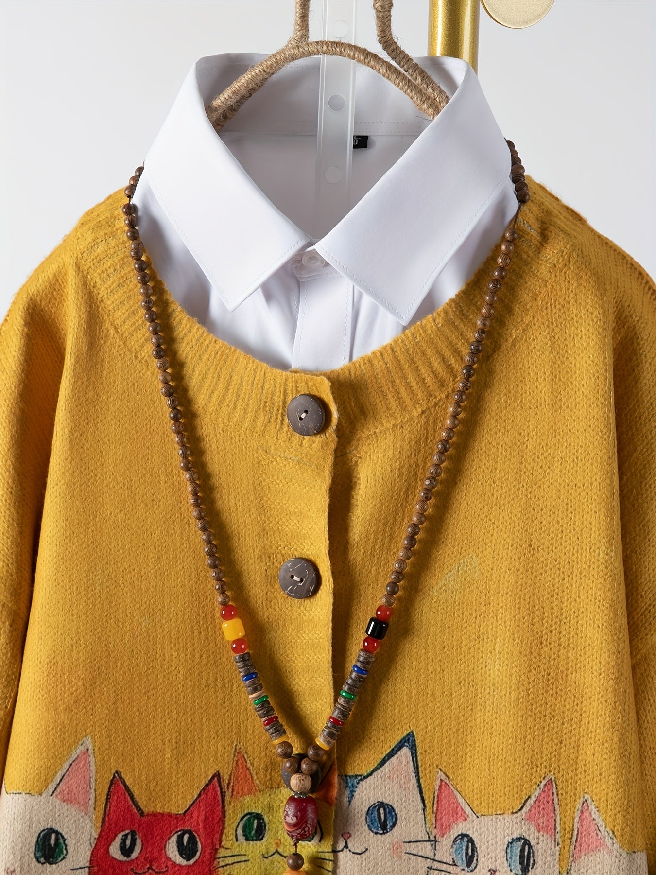 Plus Size, 3D Floral Print Cardigan - Lightweight Round Neck Button-Front Sweater, All-Season Casual & Formal Outfit Essential, Elegant Women's Fashion with Vibrant Design, Sweater Cardigan, Versatile Layering, Stylish Pullover, Durable Construction, But