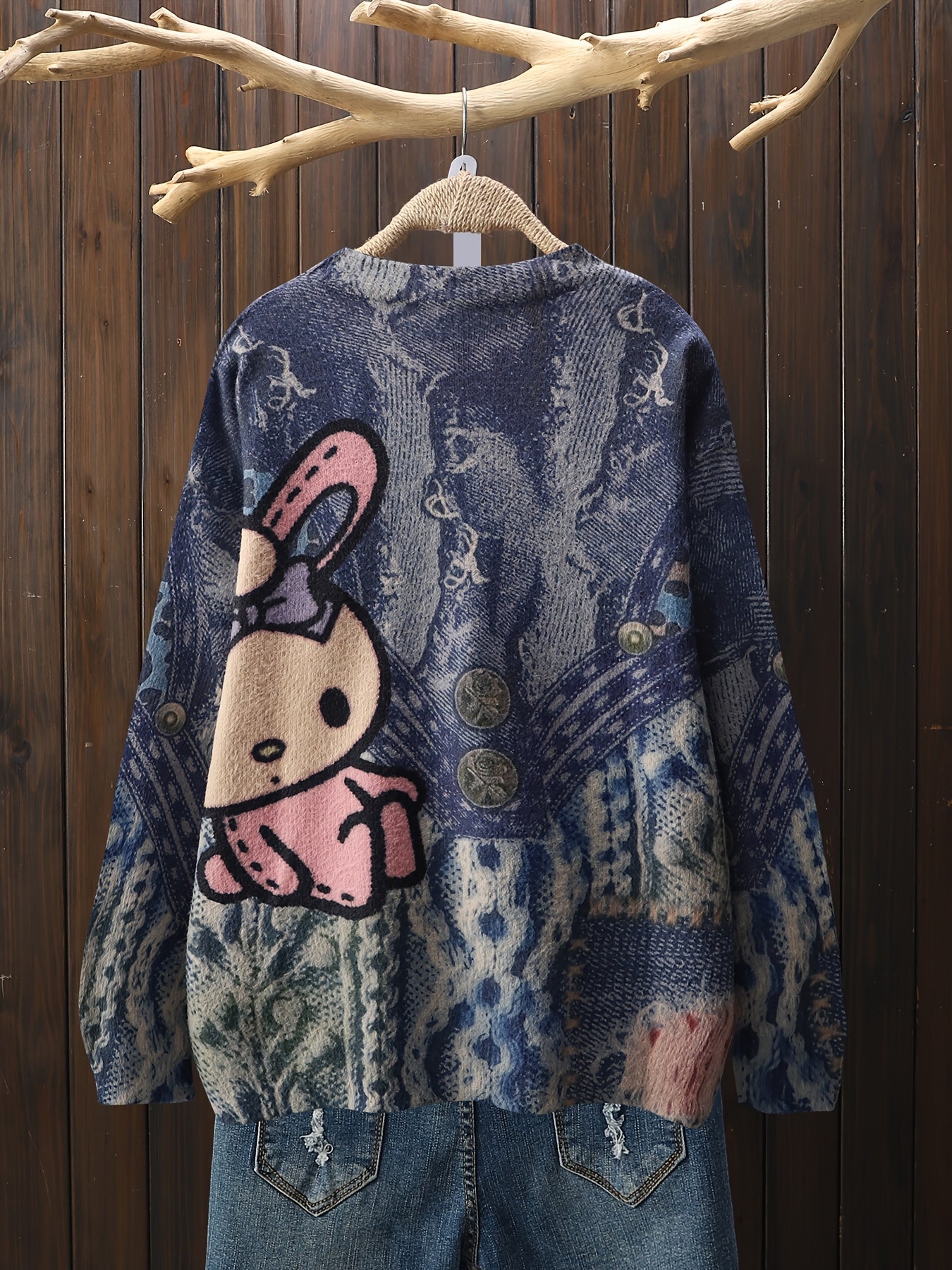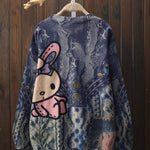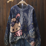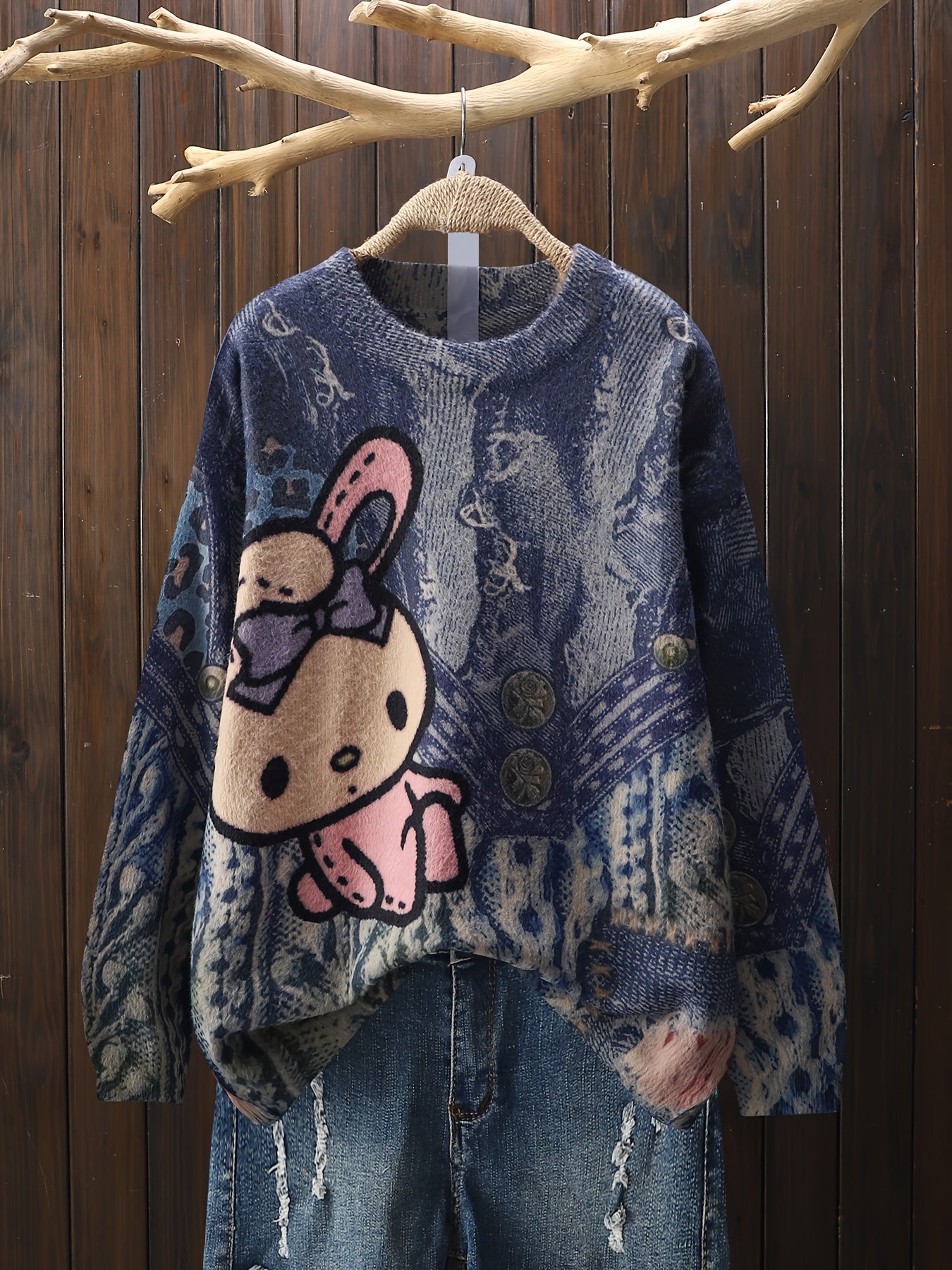 Sanrio Women's Casual Pullover Sweater with Cartoon Rabbit & Floral Print, Loose Fit Round Neck Long Sleeve Top, Machine Washable All-Season Comfort, Cute Sweater, Comfortable Clothing, Durable Fabric