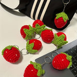 Discover this charming strawberry-shaped key ring , handmade with soft wool yarn , carefully sewn and woven. This little kawaii jewel is not only a fashion accessory but also a handmade decoration full of tenderness , ideal for decorating your car keys , handbags , school bags or even as a decorative pendant .