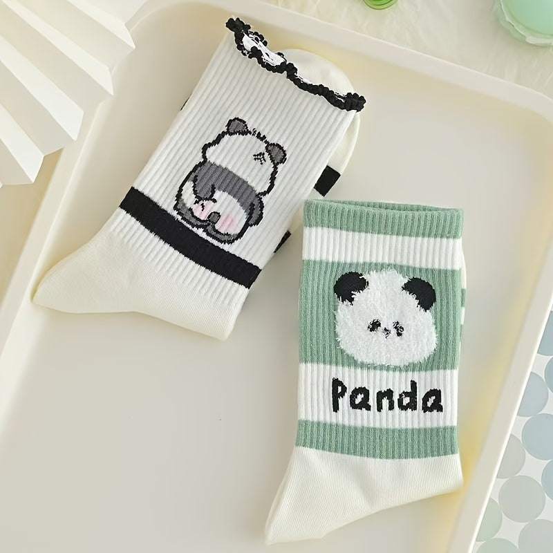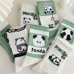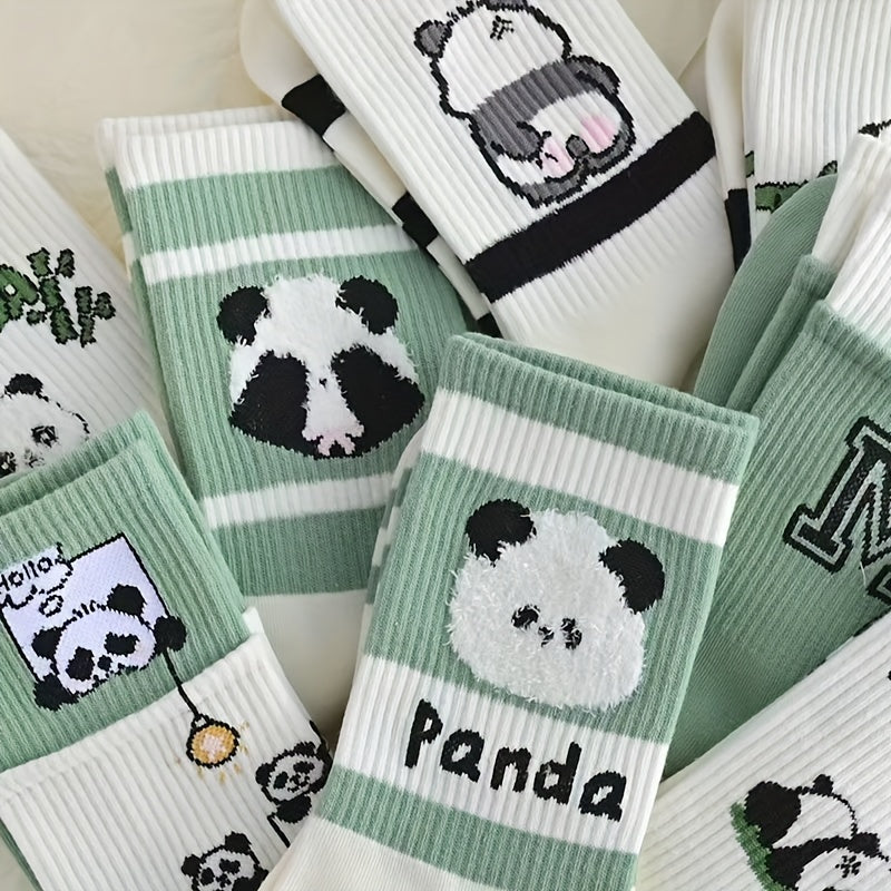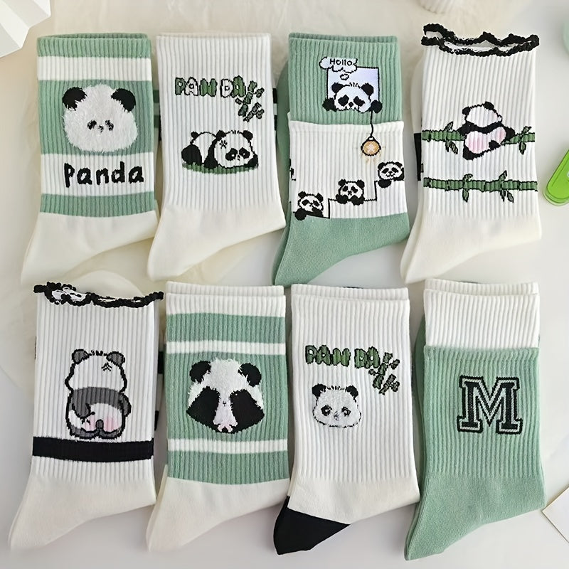 Discover this pack of 8 pairs of mid-calf socks adorned with an adorable panda motif in a playful and charming design. Alternating green and white vertical stripes with cartoon illustrations, these socks bring lightness, humor, and style to your fall and winter outfits.