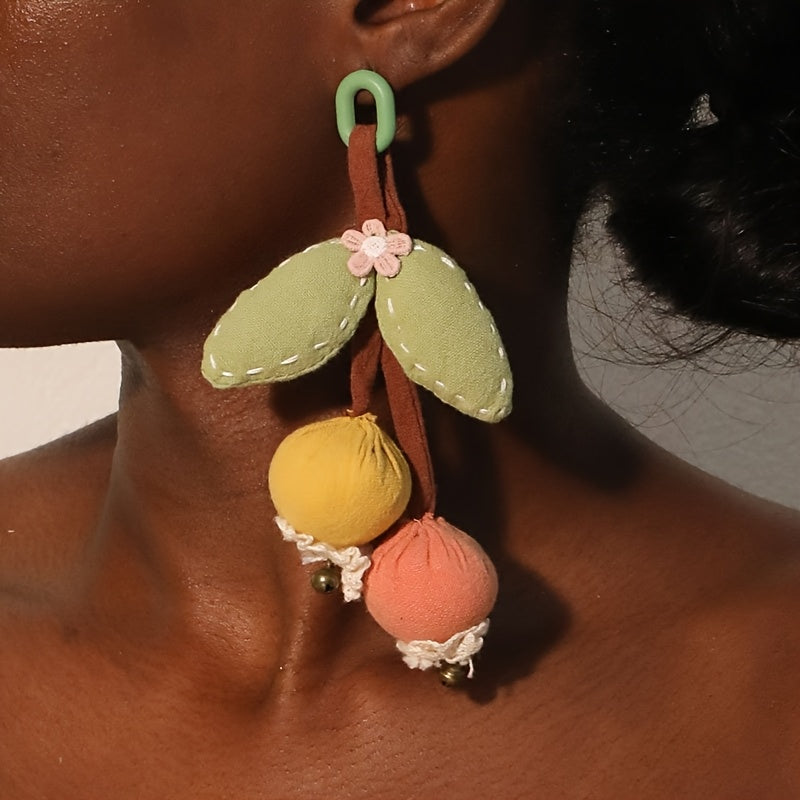 StylePair Of Leaf Fruit Tassel Fiber Earrings
