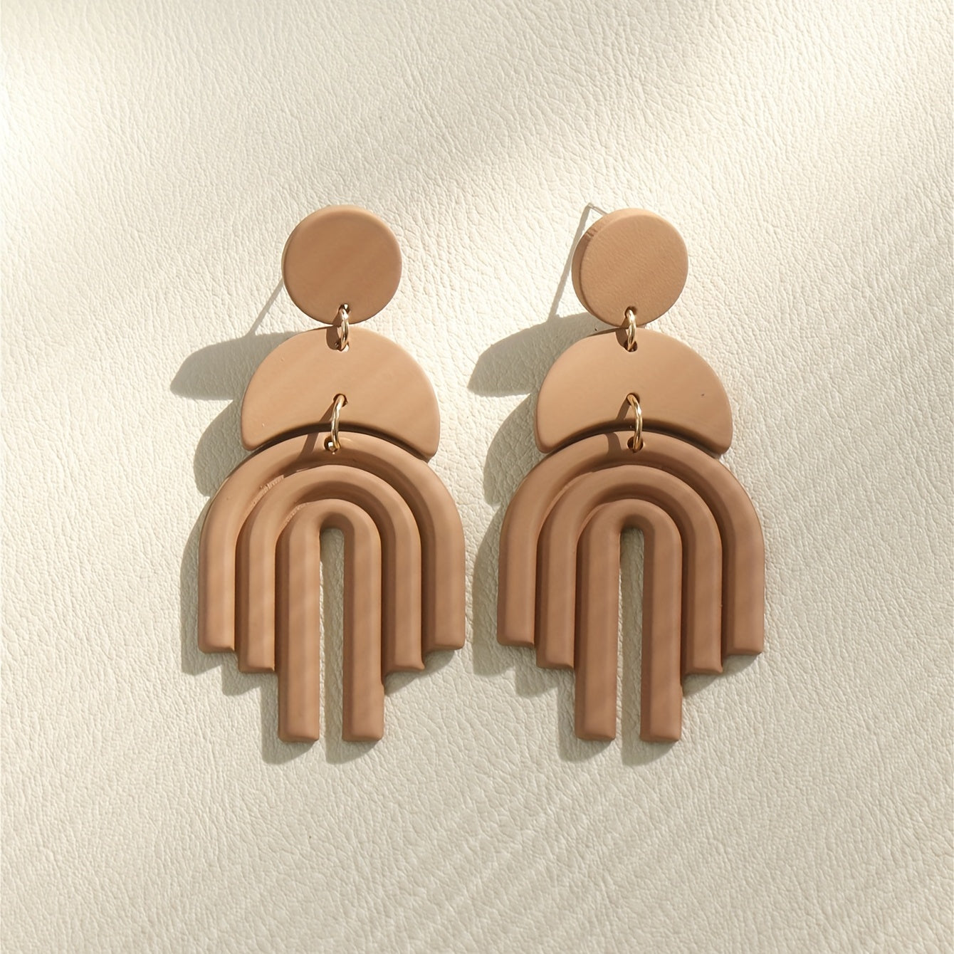 Délicates et raffinées, les boucles d’oreilles Élise se distinguent par leur design irrégulier inspiré des arcs-en-ciel, aux nuances brunes chaleureuses. Leur silhouette courbée et leur fini acrylique offrent un subtil équilibre entre minimalisme vintage et élégance contemporaine.