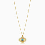 Le collier pendentif cléopatre réinterprète avec raffinement un symbole ancestral de protection. Orné de perles en or massif, de topazes blanches éclatantes et d’une turquoise véritable en son centre, il incarne l’alliance parfaite entre tradition et modernité. Un talisman précieux, aussi élégant que symbolique.