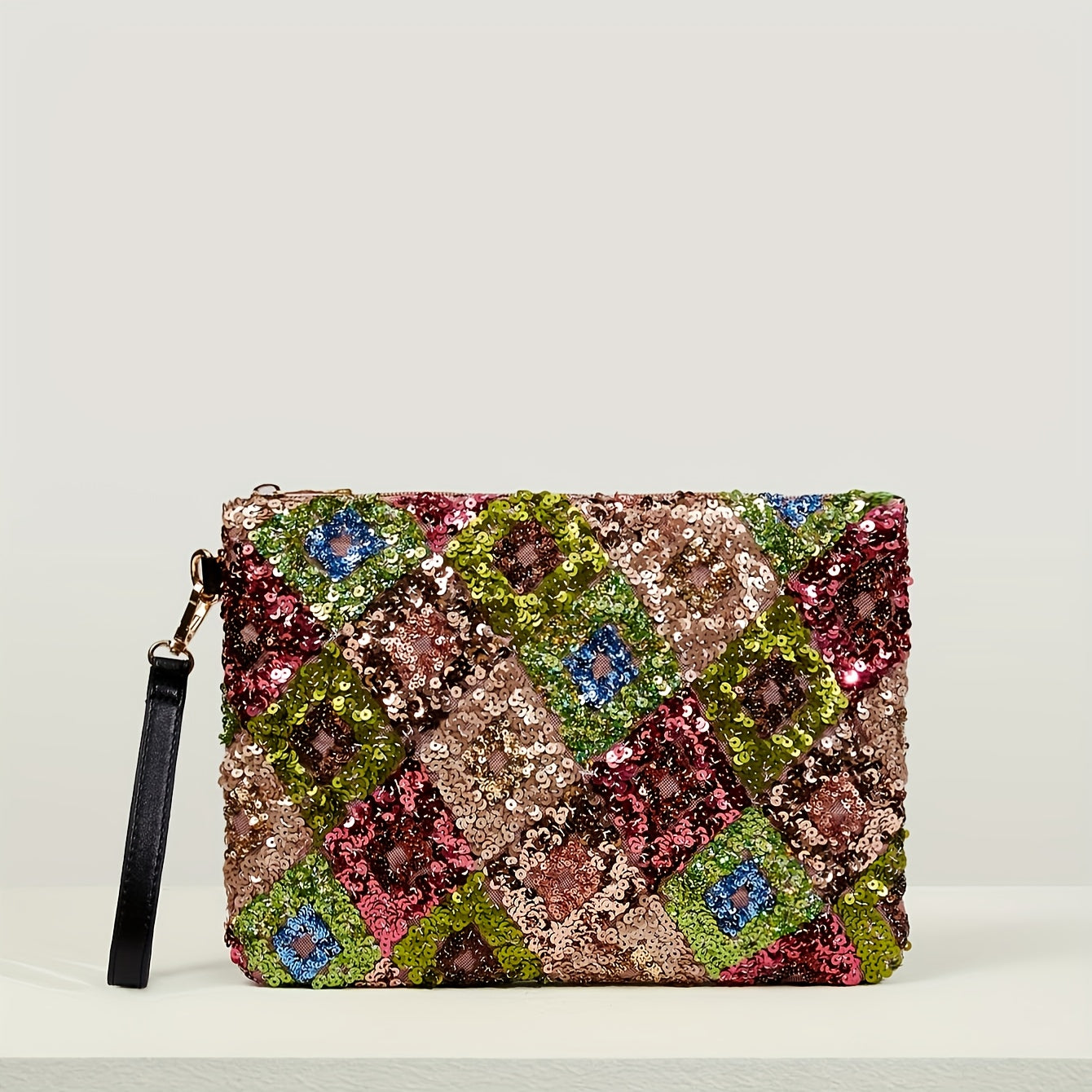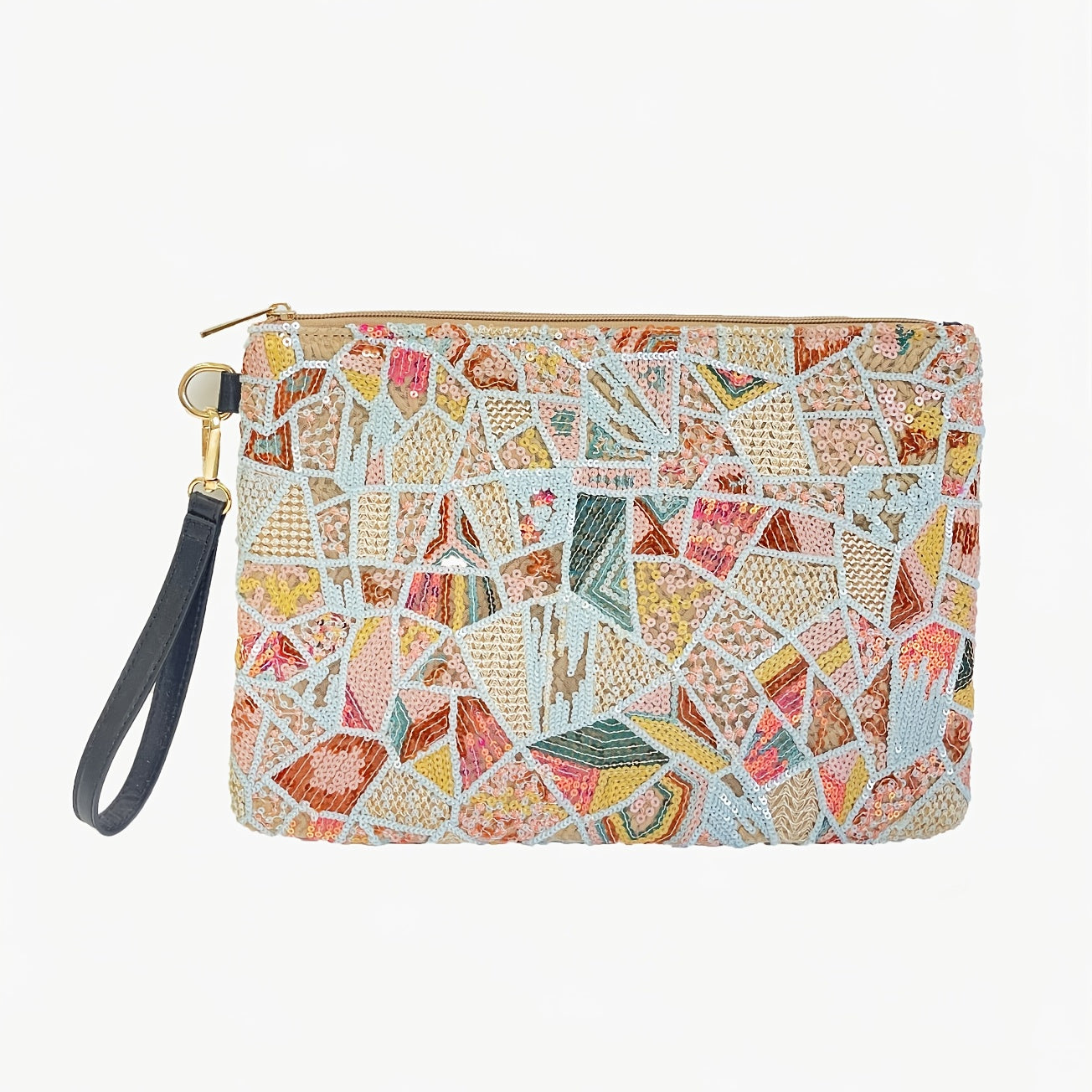 Pochette Élégante pour Femme avec Broderie Florale à Paillettes et Bracelet Détachable – Légère, Spacieuse et Parfaite pour les Soirées, Mariages, Sorties sur la Plage et Cadeaux