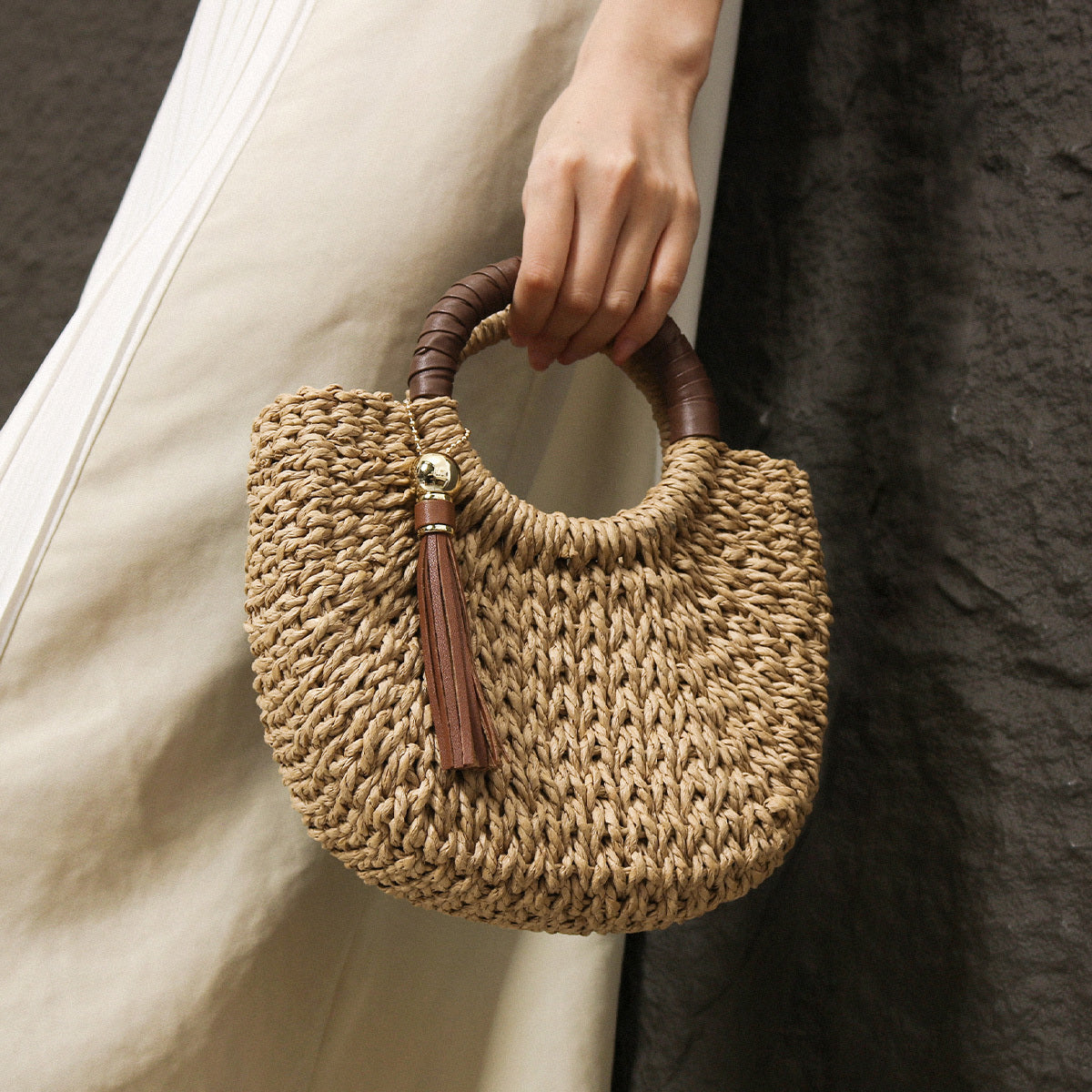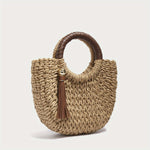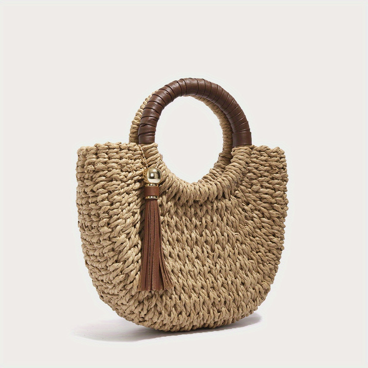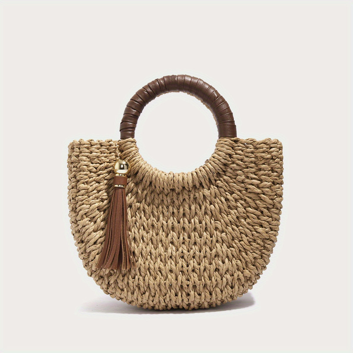Sac à Main Tissé en Herbe Naturelle pour Femme - Beige/Beige Clair, Sac de Plage Ouvert sans Fermeture, Spacieux et Décontracté pour Quotidien, Voyage ou Cadeau d'Anniversaire/Mariage - par GENCL, Bandoulière Amovible, Texture Jute